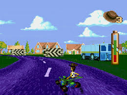 Toy Story the game follows the traditions of late 80's and early 90's video games and is a 2D platformer. What makes Toy Story stand out from other 2D platformers however were the graphics and the fact the game made you feel just like...well, a toy! Lets start with the graphics then. Travellers Tales went for a computer animated look, mimicking what Rare managed to achieve with Donkey Kong Country in 1994. The graphical style very much suited the game though as the goal was to make it look like its older and more popular brother: the film. The graphics looked stunning for the time and each of the lovable characters from the film seem to flow smoothly and look just like their movie counterparts within the game. The gameplay itself was mostly a 2D platformer. But the game stood out from other generic 2D platformers as it included a variety of gameplay styles: from a top-down racer, to a first person 3D style perspective. It really did give the game variety and make it memorable from other simple cut and paste 2D platformers which were rampant during the time.